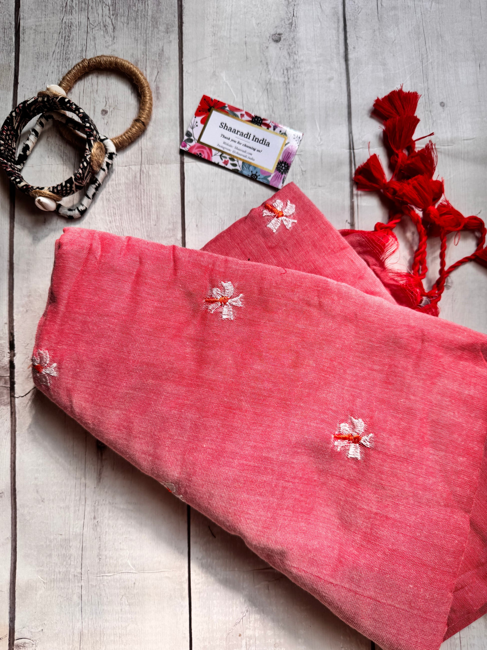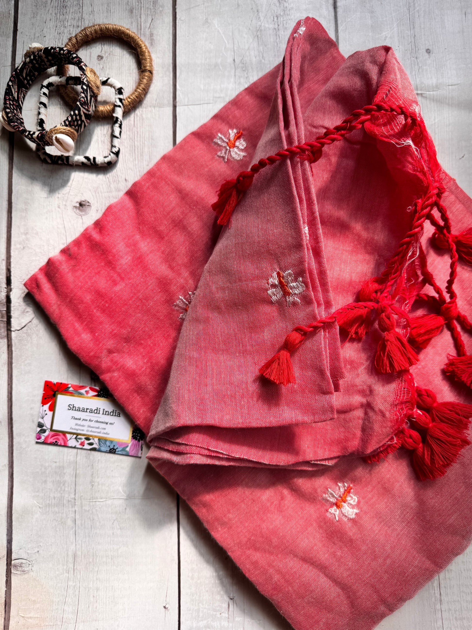 Pure mul cotton saree designed with contrast golden paar and handmade tasseled pallu.